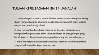 Muamalat adalah urusan yang melibatkan hukum syariat dan bersangkut paut dengan urusan dunia dimana aktiviti manusia pada hari ini adalah jual beli pinjam meminjam dan sebagainya. Untuk meningkatkan pertumbuhan ekonomi berkelanjutan diperlukan upaya pemerintah dalam mengembangkan semua aspek di dalamnya. Insting dan komando paksaan atau perintah Bagi.